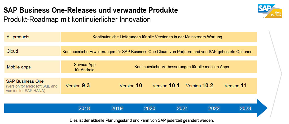 Die Produkt Roadmap beschreibt die Vision der SAP SE, SAP Business One zur besten ERP-Lösung für den Mittelstand in der “digitalen Wirtschaft” zu machen: