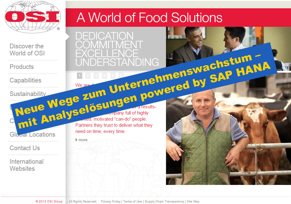 Im Jahre 1909 öffnete der erste Fleischmarkt in Chicago, seitdem hat sich die OSI-Gruppe zum weltweit führenden Lebensmittelanbieter der Food-Service-Industrie etabliert. Kontinuierliches Unternehmenswachstum macht den Einsatz von SAP Business One powered by SAP HANA für den Standort Shanghai, China unabdingbar.