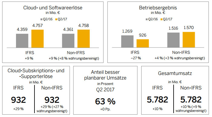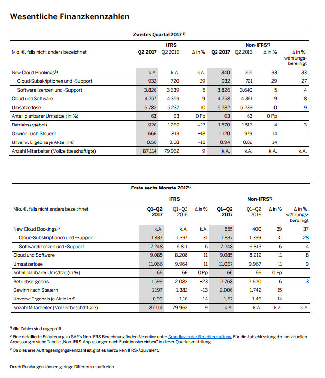 Ergebnisse für das zweite Quartal und das erste Halbjahr 2017 der SAP