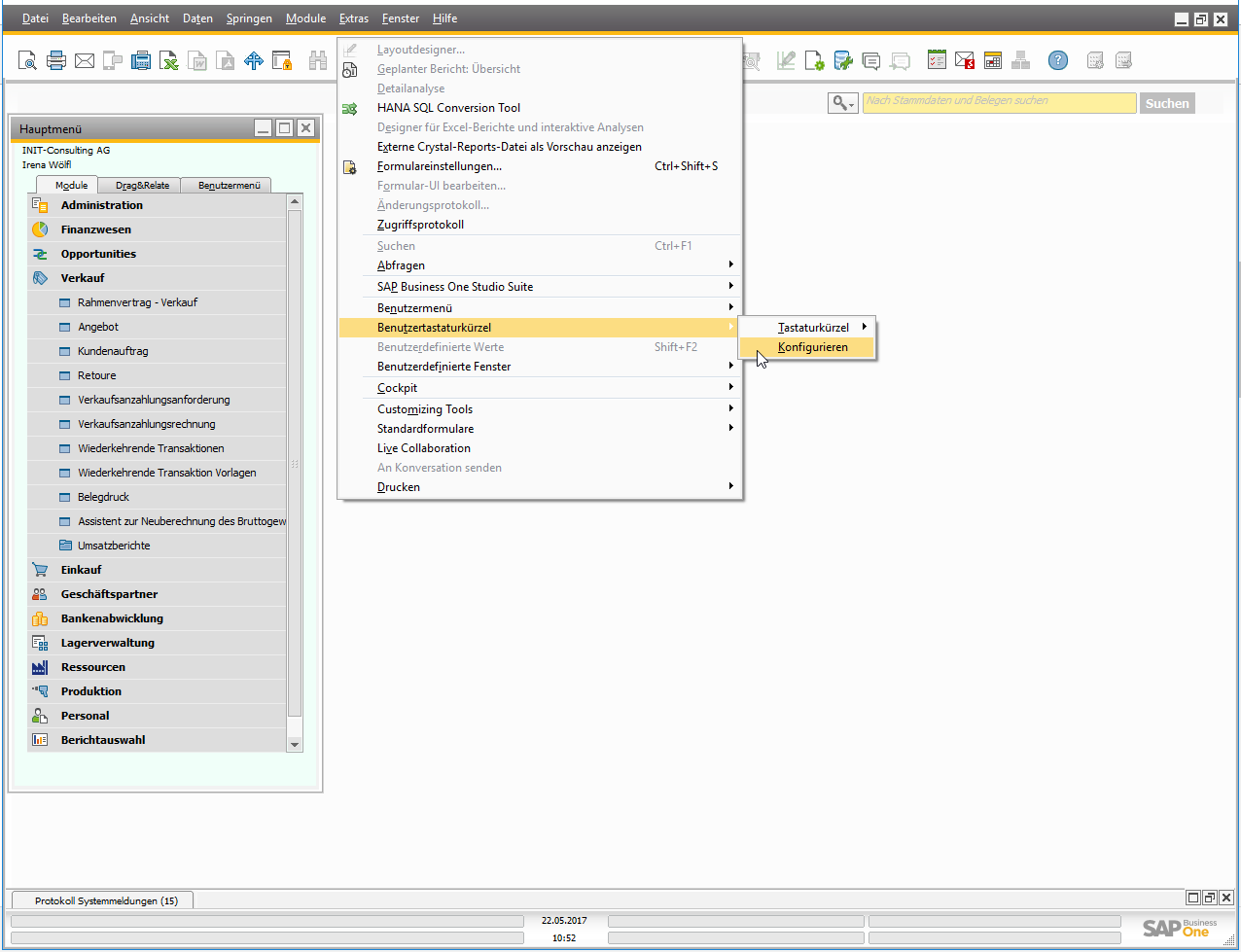 Definieren Sie Ihre eigenen Shortcuts zu ausgewählten Fenstern und erhalten Sie einen sofortigen Zugriff auf Ihre Aufgaben!