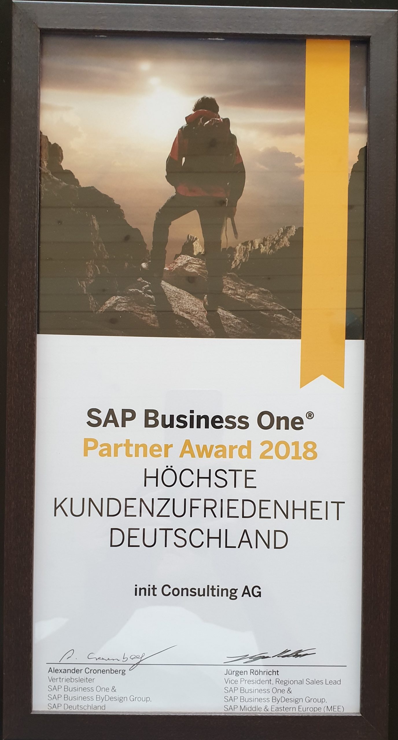 Auf dem SMB Innovations Summit 2019 in Nizza wurde durch die SAP der init consulting AG in der Kategorie „Höchste Kundenzufriedenheit der Partner Award 2018 überreicht.