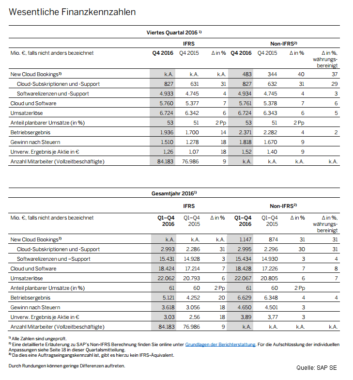 SAP-Quartalsmitteilung Q4 2016